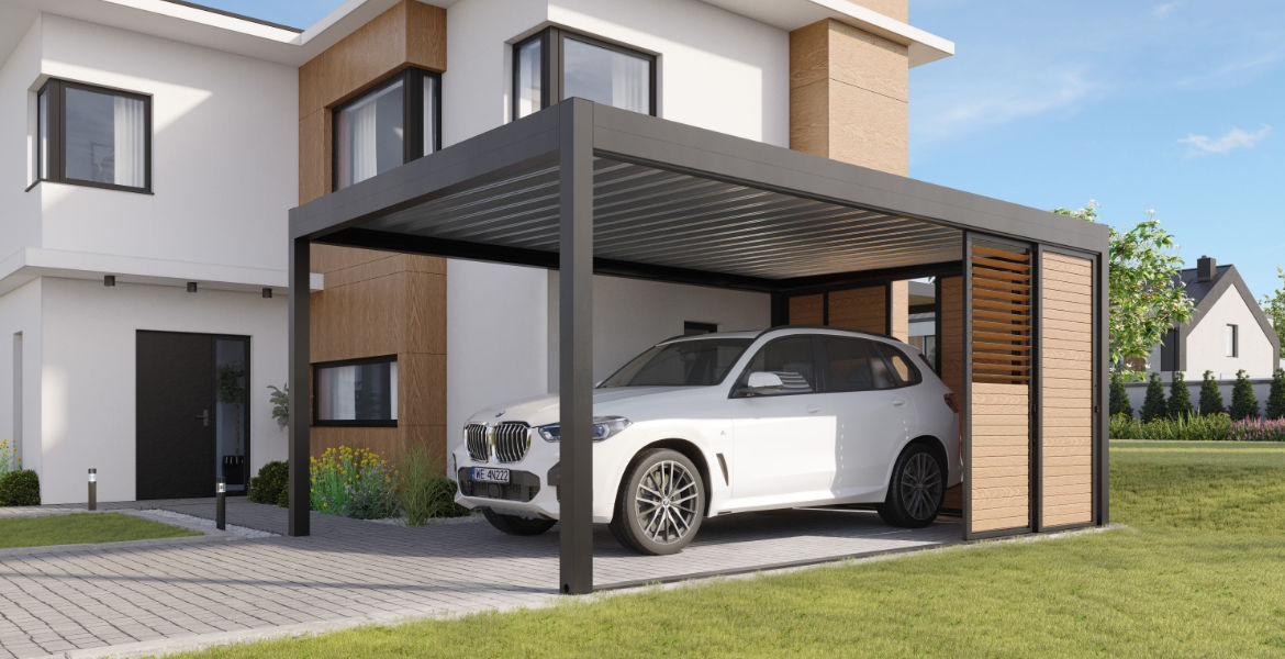Wählen Sie aus unseren optionalen Lösungen für Beleuchtung, verschiebbaren Seitenteilen (Shutters), Beleuchtung und Photovoltaikanlage. Stimmen Sie Ihren Carport genau auf Ihre Bedürfnisse und Wünsche ab.